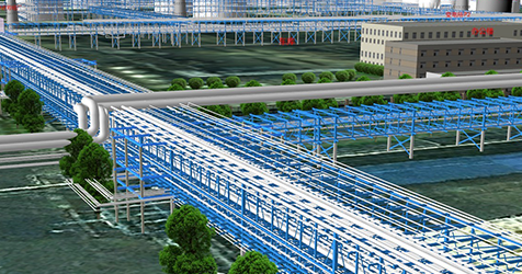 化工園總圖規劃系統將以原始圖紙資料為基礎做成的管廊、管線數據,以二維展現的方式加載到系統中,它不僅支持海量的矢量、影像和業務屬性等數據的加載和顯示